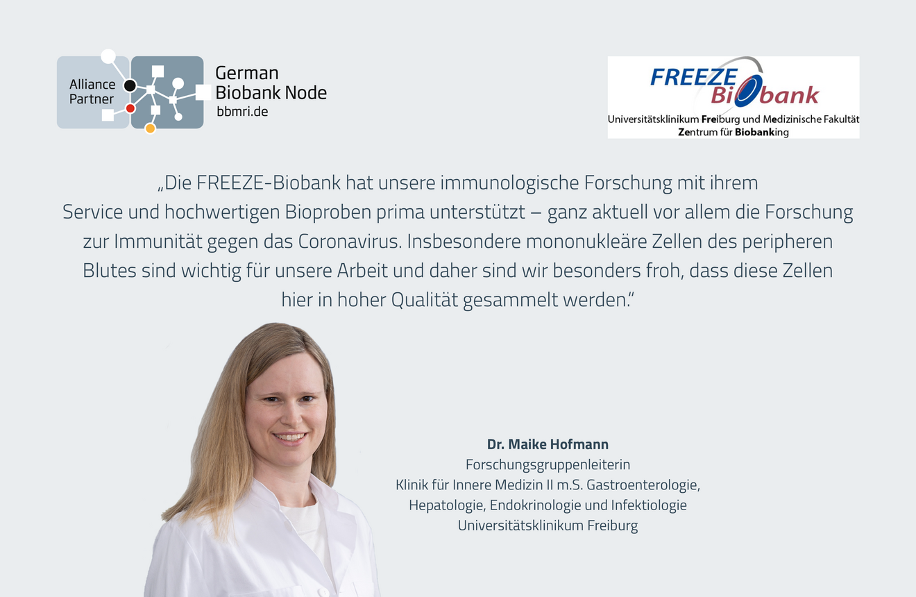As part of the German Biobank Alliance (GBA), the FREEZE Biobank would like to set special accents in the areas of i) blood cell-based biobanking, ii) biobanking for tissue replacement and iii) data integration through close partnership with the Medical Informatics Initiative (MIRACUM).