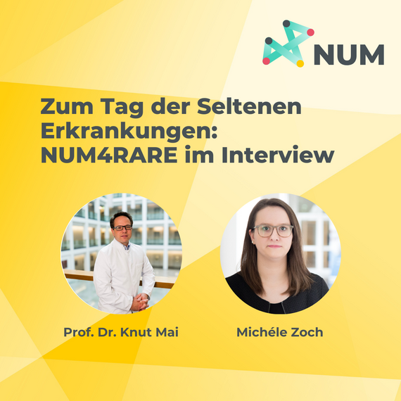 Seltene Erkrankungen betreffen jeweils nur recht wenige Menschen – in ihrer Gesamtheit jedoch Millionen. Um die Forschung in diesem Bereich weiter zu stärken, ist im NUM kürzlich das Projekt NUM4RARE gestartet. Zum Projektstart haben wir mit den Projektleiter:innen Michéle Zoch (Universitätsklinikum Carl Gustav Carus Dresden) und Prof. Dr. Knut Mai (Charité - Universitätsmedizin Berlin) über die Ziele und den erhofften Impact von NUM4RARE sowie die Einbindung von Patient:innen ins Projekt gesprochen.